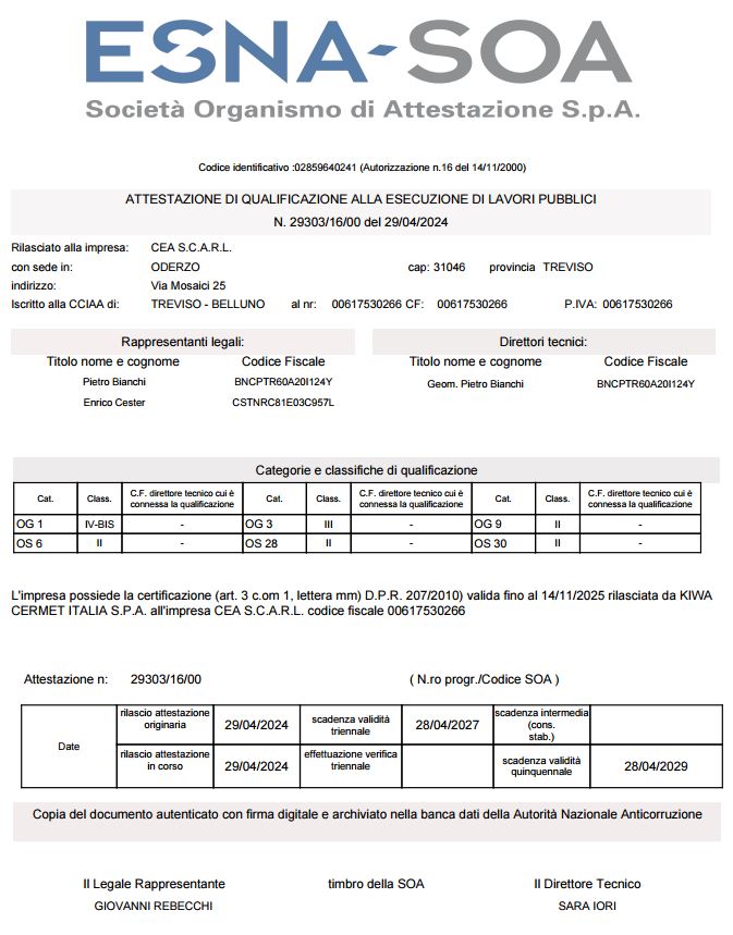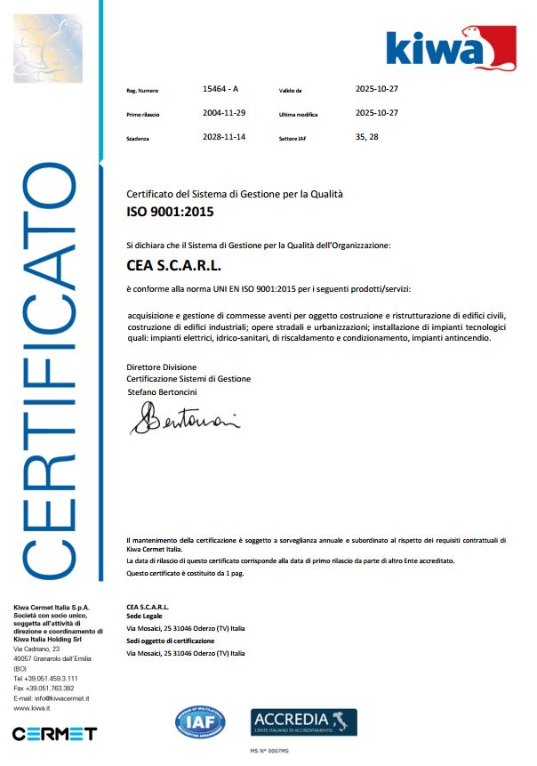Dal 2004 disponiamo della certificazione UNI EN ISO 9001