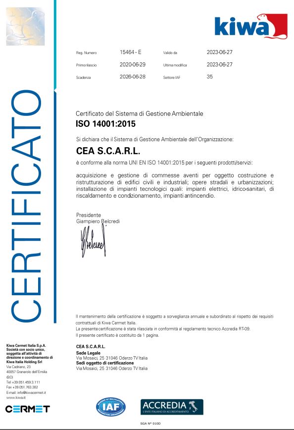 Dal 2020 disponiamo della certificazione UNI EN ISO 14001